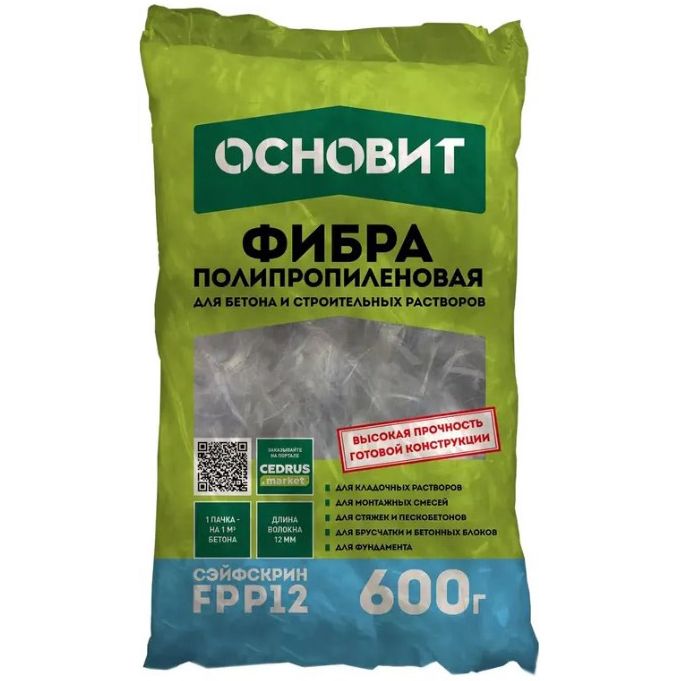 Фибра полипропиленовая Основит (Osnovit) Сэйфскрин FPP12 - это высококачественный армирующий материал, предназначенный для улучшения прочностных характеристик строительных смесей. С помощью данной фибры вы сможете добиться значительного повышения прочности и долговечности ваших строительных объектов, что делает ее незаменимым компонентом в современных строительных технологиях.