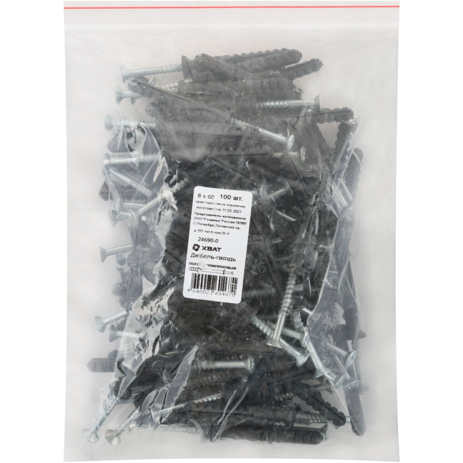 Доставка Дюбель-гвоздь Хват (Hvat) полипропиленовый 8х60 мм 100 шт, 24690-0 из Москва в районы и города ЮВАО, ЮЗАЮ, ЮАО, Киевское шоссе 20км, строительный рынок Строймастер, МКАД 45 км, Мосрентген, Коммунарка, Одинцово, Щербинка, Подольск, Троицк, Московский, Внуково, Видное, Краснознаменск, строительный рынок Тополёк, бывшая Мельница, строительный рынок Славянский мир
