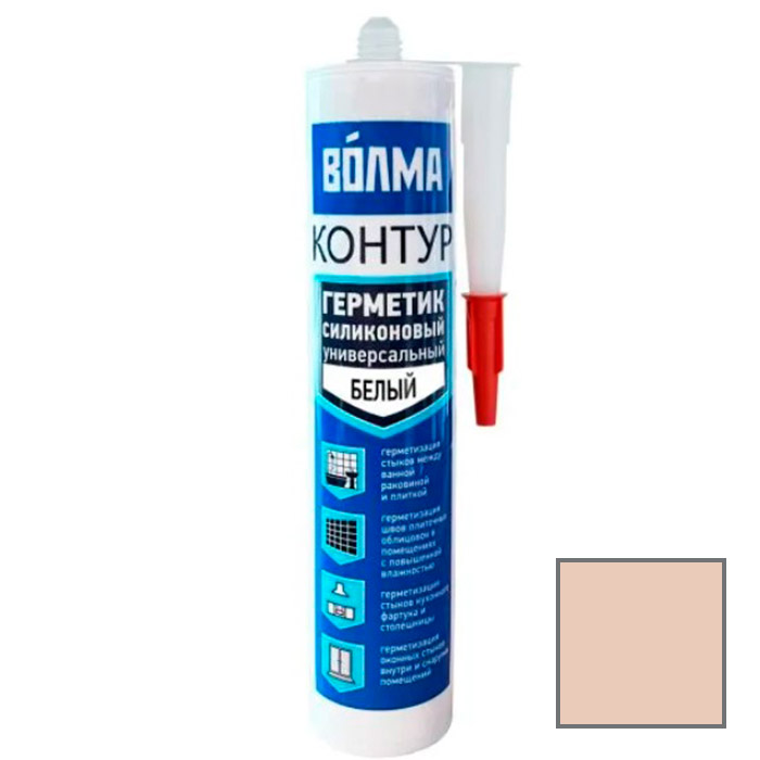 Доставка Герметик силиконовый Volma (Волма) Контур бежевый 290 мл из Москва в районы и города ЮВАО, ЮЗАЮ, ЮАО, Киевское шоссе 20км, строительный рынок Строймастер, МКАД 45 км, Мосрентген, Коммунарка, Одинцово, Щербинка, Подольск, Троицк, Московский, Внуково, Видное, Краснознаменск, строительный рынок Тополёк, бывшая Мельница, строительный рынок Славянский мир