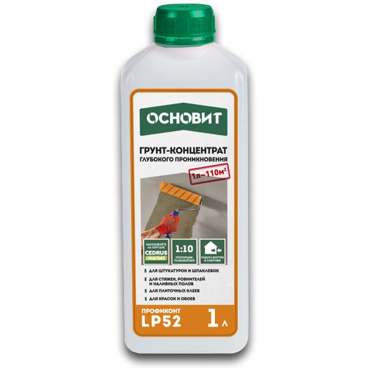 Доставка Грунтовка Основит (Osnovit) Профиконт LP52 Грунт-концентрат 1 л из Москва в районы и города ЮВАО, ЮЗАЮ, ЮАО, Киевское шоссе 20км, строительный рынок Строймастер, МКАД 45 км, Мосрентген, Коммунарка, Одинцово, Щербинка, Подольск, Троицк, Московский, Внуково, Видное, Краснознаменск, строительный рынок Тополёк, бывшая Мельница, строительный рынок Славянский мир