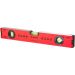 Усиленный профиль с двумя фрезерованными измерительными поверхностями и ребрами жесткости. Пластиковые заглушки на концах имеют резиновые вставки, предотвращающие скольжение при измерениях на наклонных плоскостях. Модель имеет три акриловых глазка для проверки отклонений по горизонтали, вертикали, а также регулируемый глазок для выверки произвольных углов. Точность измерений – 0,5 мм м (0,029 градуса).