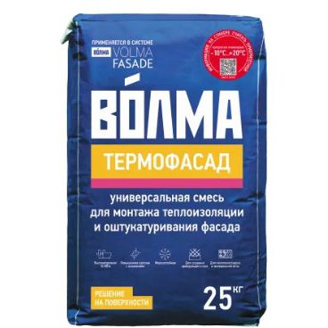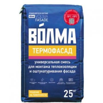 Штукатурно-клеевая смесь Волма (Volma) Термофасад зимняя - это идеальное решение для создания теплоизоляционных систем на фасадах зданий в зимний период. Эта высококачественная смесь разработана с учетом особенностей холодного климата, что позволяет эффективно выполнять работы даже при низких температурах. Объем упаковки составляет 25 кг, что делает ее удобной для использования как профессиональными строителями, так и любителями.
