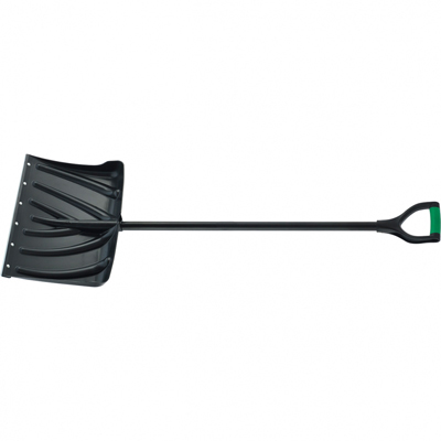 Снеговая лопата из морозостойкого пластика. C широким ковшом. Рабочее ребро оснащено заостренной стальной пластиной, которая позволяет в процессе уборки срезать пласты смерзшегося снега, оставляя очищенную поверхность ровной. Лопата снабжена легким, прочным металлическим черенком, покрытым сверху слоем пластика, который исключает проскальзывание рук в процессе работы. На конце черенка имеется удобная двухкомпонентная рукоятка, позволяющая при отбрасывании снега разместить руку максимально комфортно.