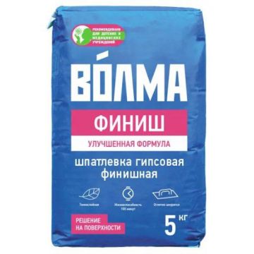 ВОЛМА-Финиш - сухая шпаклевочная смесь на основе гипсового вяжущего с размером частиц менее 0,2 мм, минеральных наполнителей и модифицирующих добавок, обеспечивающих трещиностойкость и повышенную адгезию.